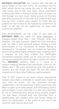 FUTURE ARCHIVE RECORDINGS IS A NEW ARTIST-RUN RECORD LABEL THAT WAS FOUNDED BY LITTLE PEOPLE, CNJR, SUN GLITTERS & ARMS AND SLEEPERS. IN THE NEXT FEW PAGES, WE INTRODUCE YOU TO OUR MISSION AND CURRENT PROJECTS.